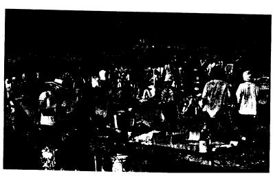 Later, all of us were excited about the success of the first day of our week-long action. As we cleaned and packed up our table, and headed back to Peace Camp across the highway, we reflected on the wide variety ofactions with which Food Not Bombs had been involved over the past few years. * * * The Boston Pee Party on October 29, 1986, was a funny example. During the time just before this, we were confronted by a crazy array of issues. Reagan had kicked the general level of national repression to new heights by demanding widespread, mandatory drug testing, using the "War on Drugs" as an excuse. One of the members of Food Not Bombs worked as a technician in a lab responsible for drug testing and knew just how unreliable those tests really were. Innocent people were losing their jobs, and the media was awash in stories about the menace of drugs and the need to cast aside civil liberties to win this "war" at any cost. It occurred to us that political activists would make an easy target for this hysteria, so we planned to respond to this repression by "flooding" the White House with urine samples. However, we dropped this idea for fear we would all end up in prison. But it was too good to be forgotten,